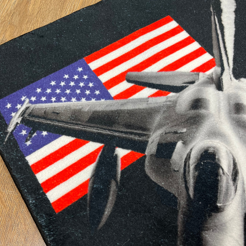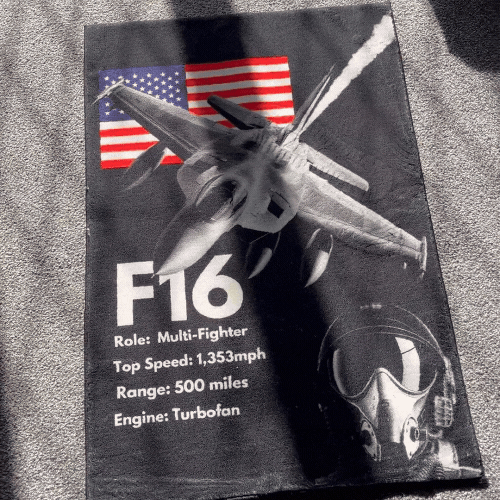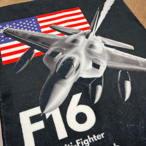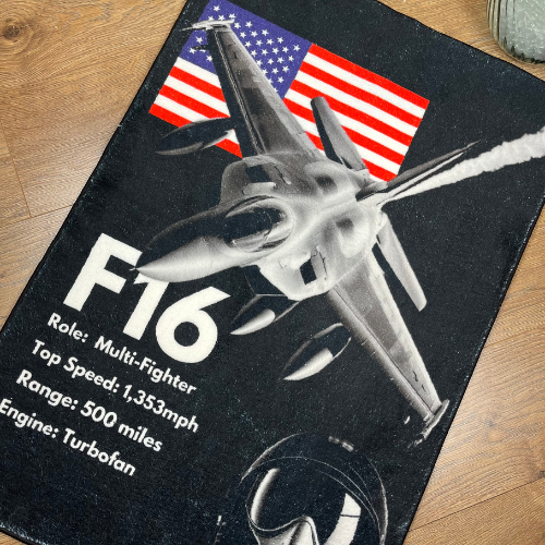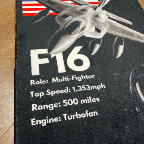 "There’s something about this rug that just pulls the whole space together. The fighter jet design is crisp, the colours are bold, and it makes for a wonderful man cave decoration!"